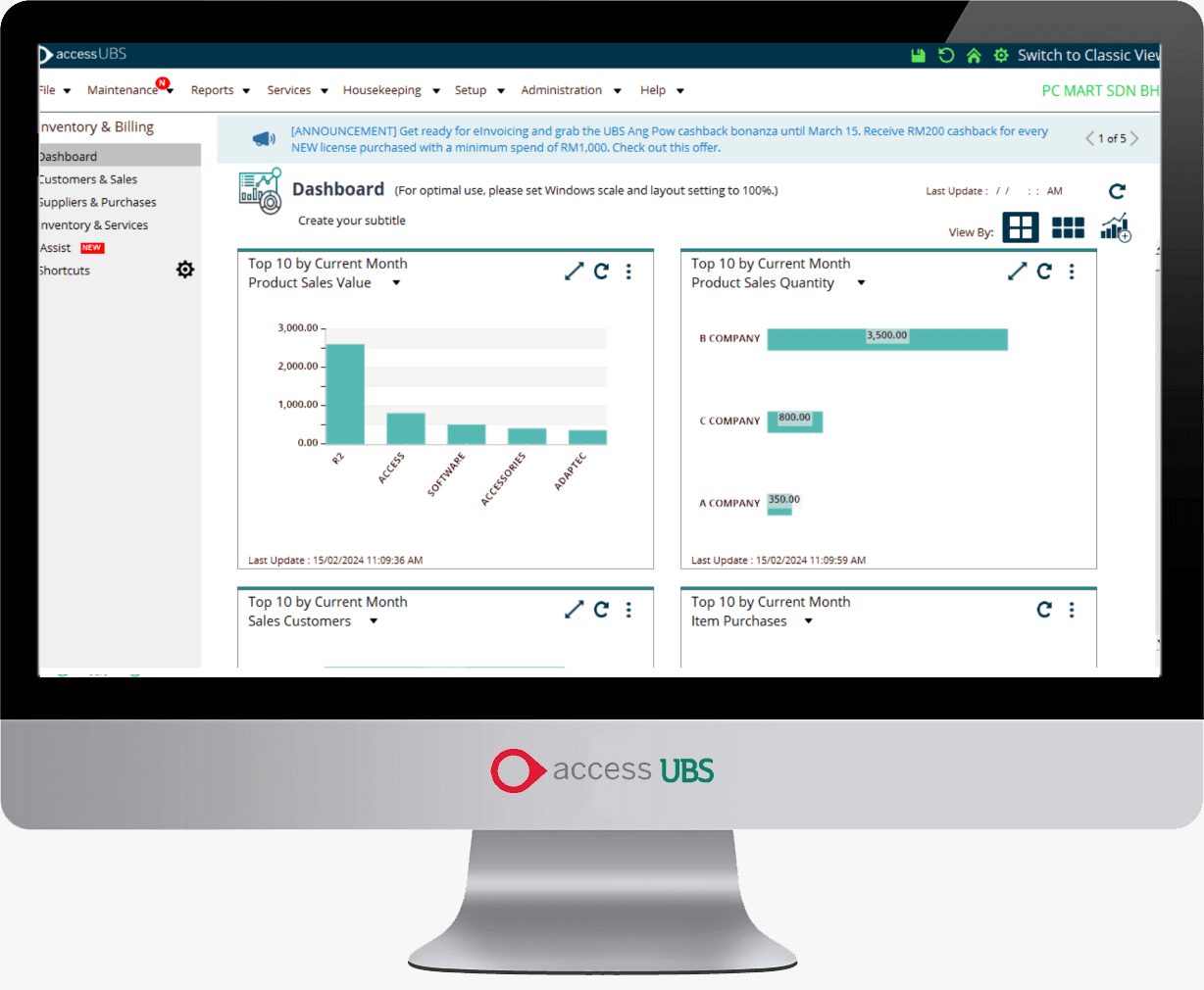 With integrated inventory management software in Access UBS, you’ll get up-to-the-minute stock data across your general ledger, sales, and purchase orders